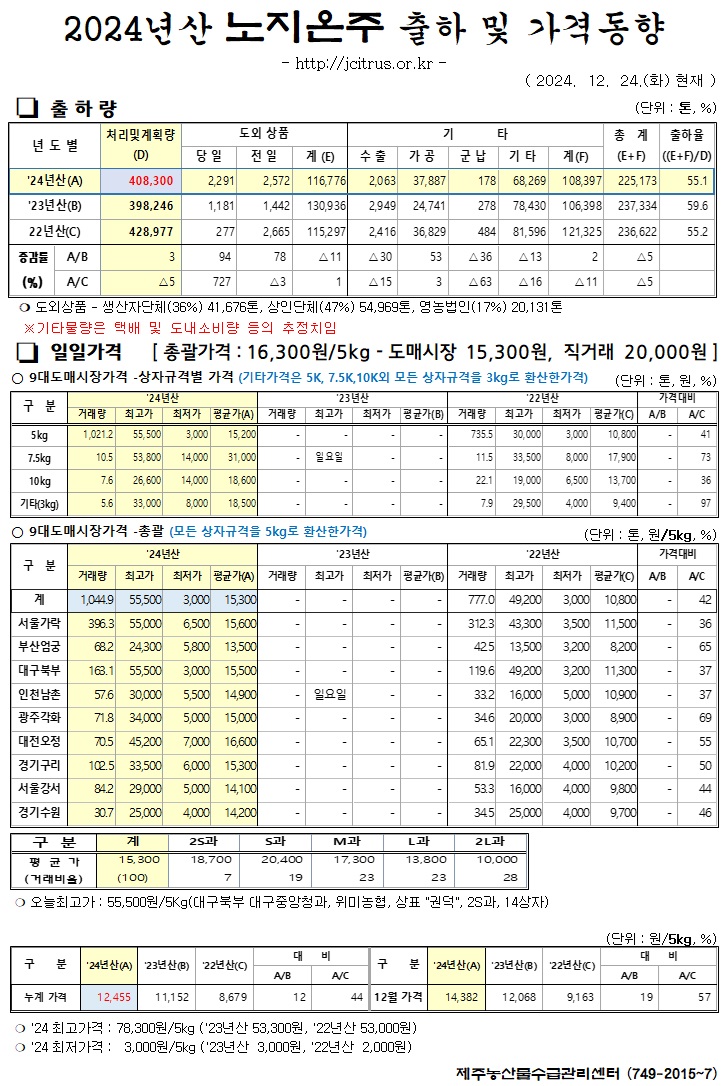 [노지온주]2025년산 출하 및 가격동향(10/14)