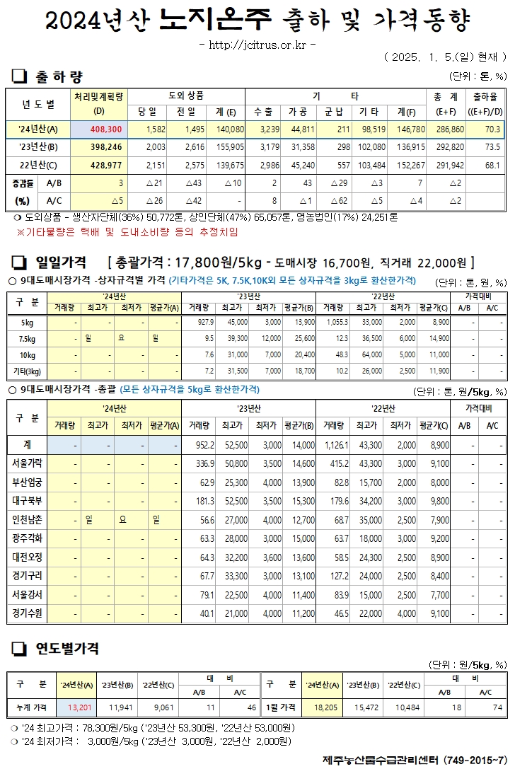 [노지온주]2024년산 출하 및 가격동향(1/5)