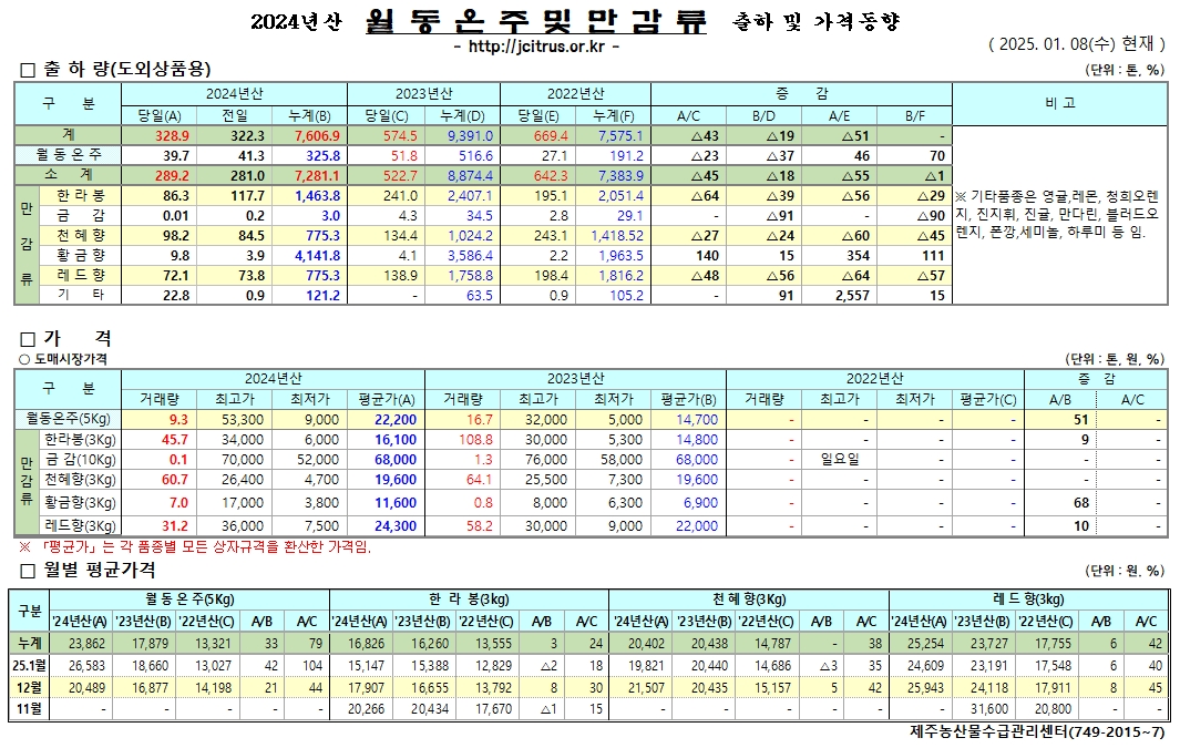 [노지온주]2025년산 출하 및 가격동향(10/1)