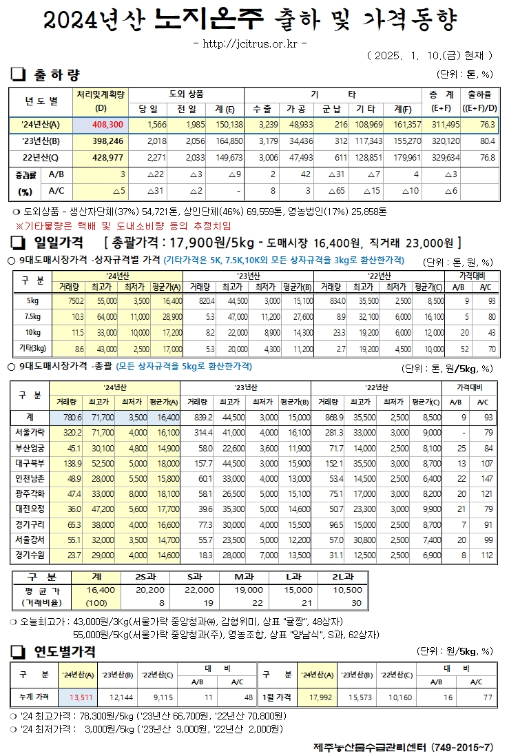 [노지온주]2024년산 출하 및 가격동향(1/10)