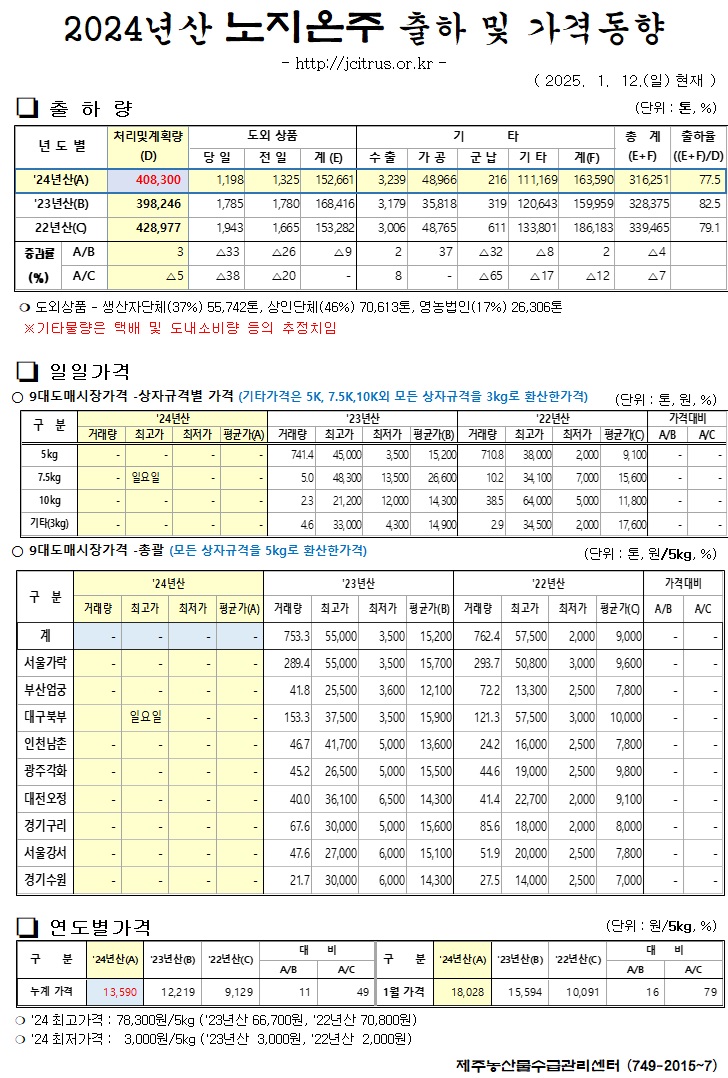 [노지온주]2024년산 출하 및 가격동향(1/12)