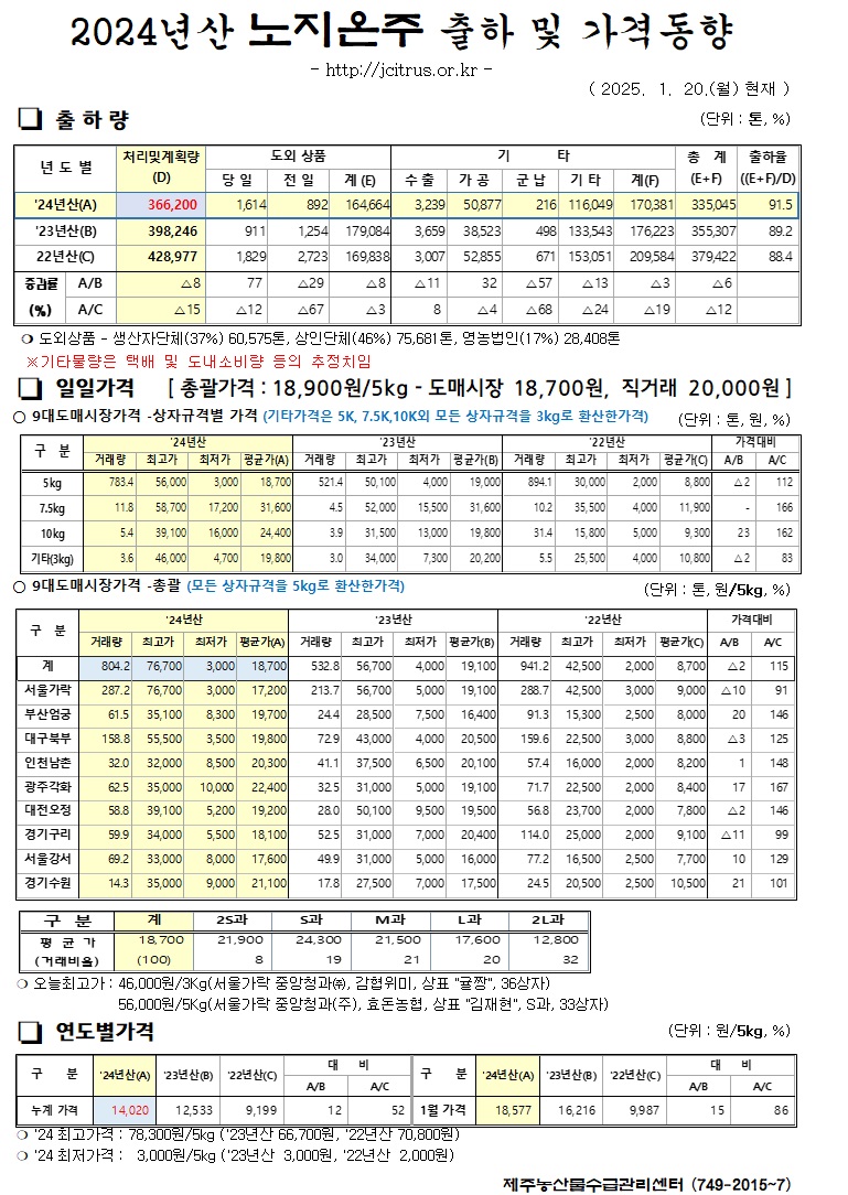 [노지온주]2025년산 출하 및 가격동향(10/14)