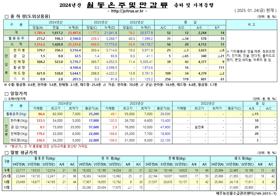 [하우스온주]2025년산 출하 및 가격동향(10/14)