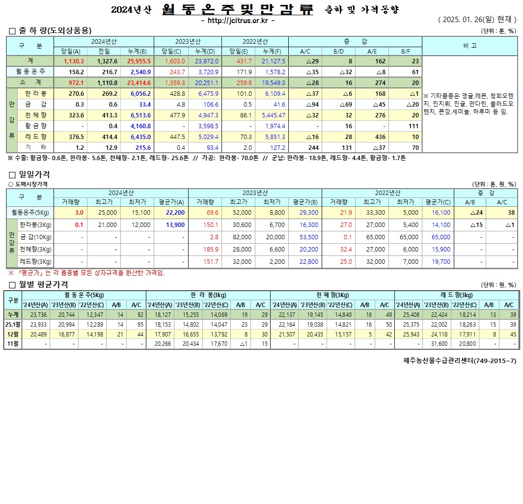 [월동&만감]2024년산 출하 및 가격동향(1/26)
