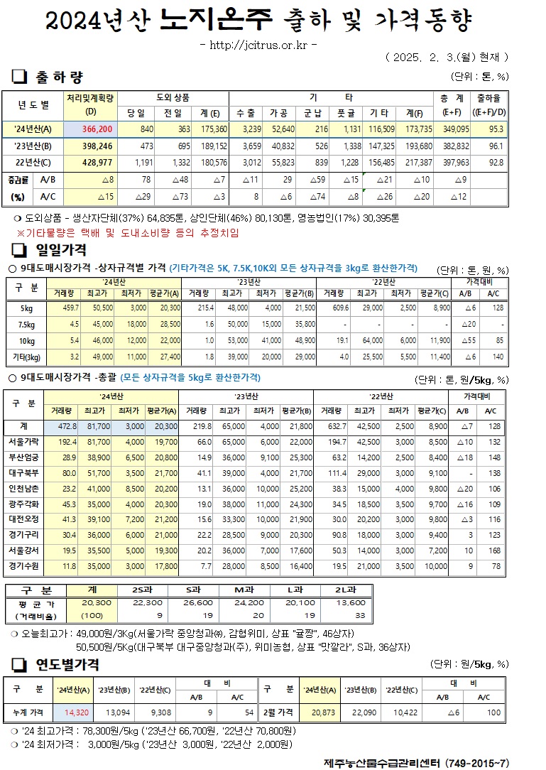 [노지온주]2024년산 출하 및 가격동향(2/3)