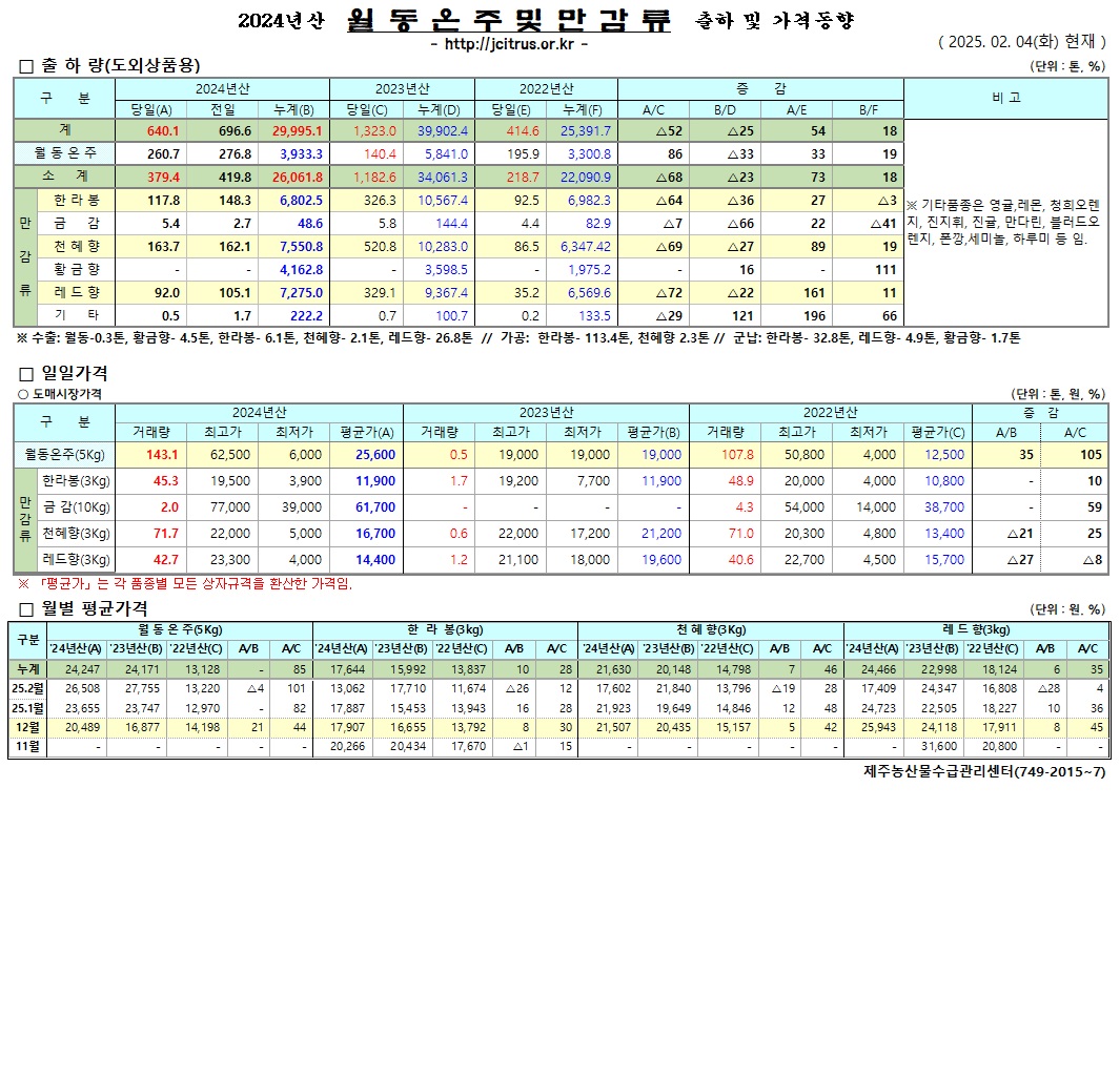 [월동&만감]2024년산 출하 및 가격동향(2/4)