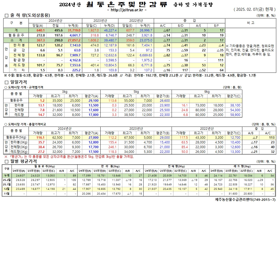 [월동&만감]2024년산 출하 및 가격동향(2/7)
