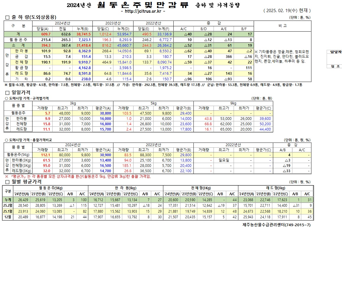 [월동&만감]2024년산 출하 및 가격동향(2/19)