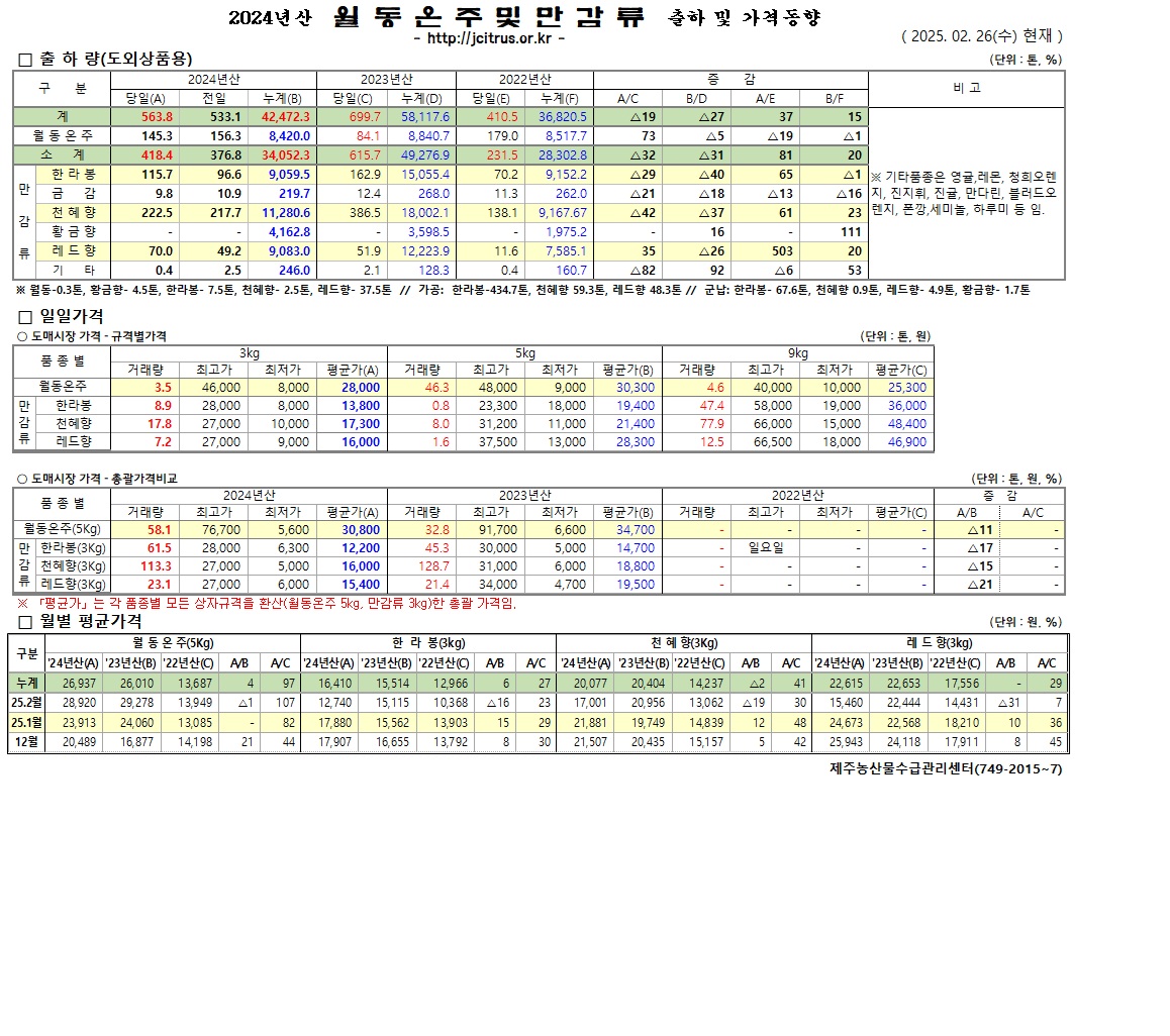[월동&만감]2024년산 출하 및 가격동향(2/26)