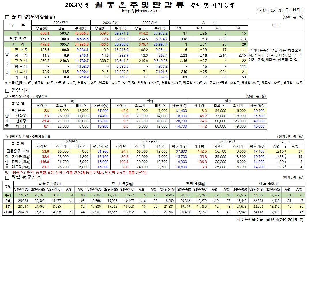 [월동&만감]2024년산 출하 및 가격동향(2/28)