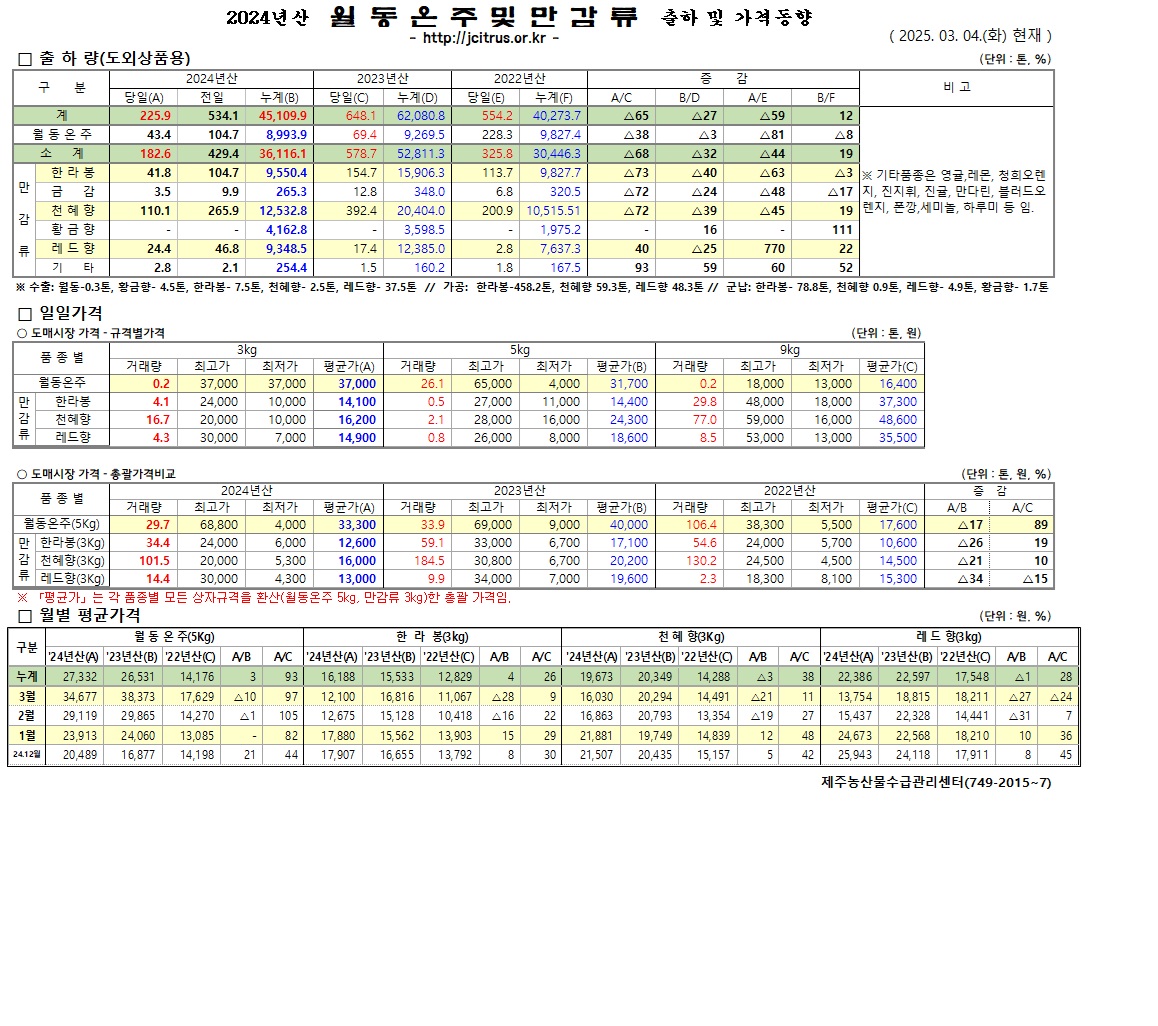 [월동&만감]2024년산 출하 및 가격동향(3/4)