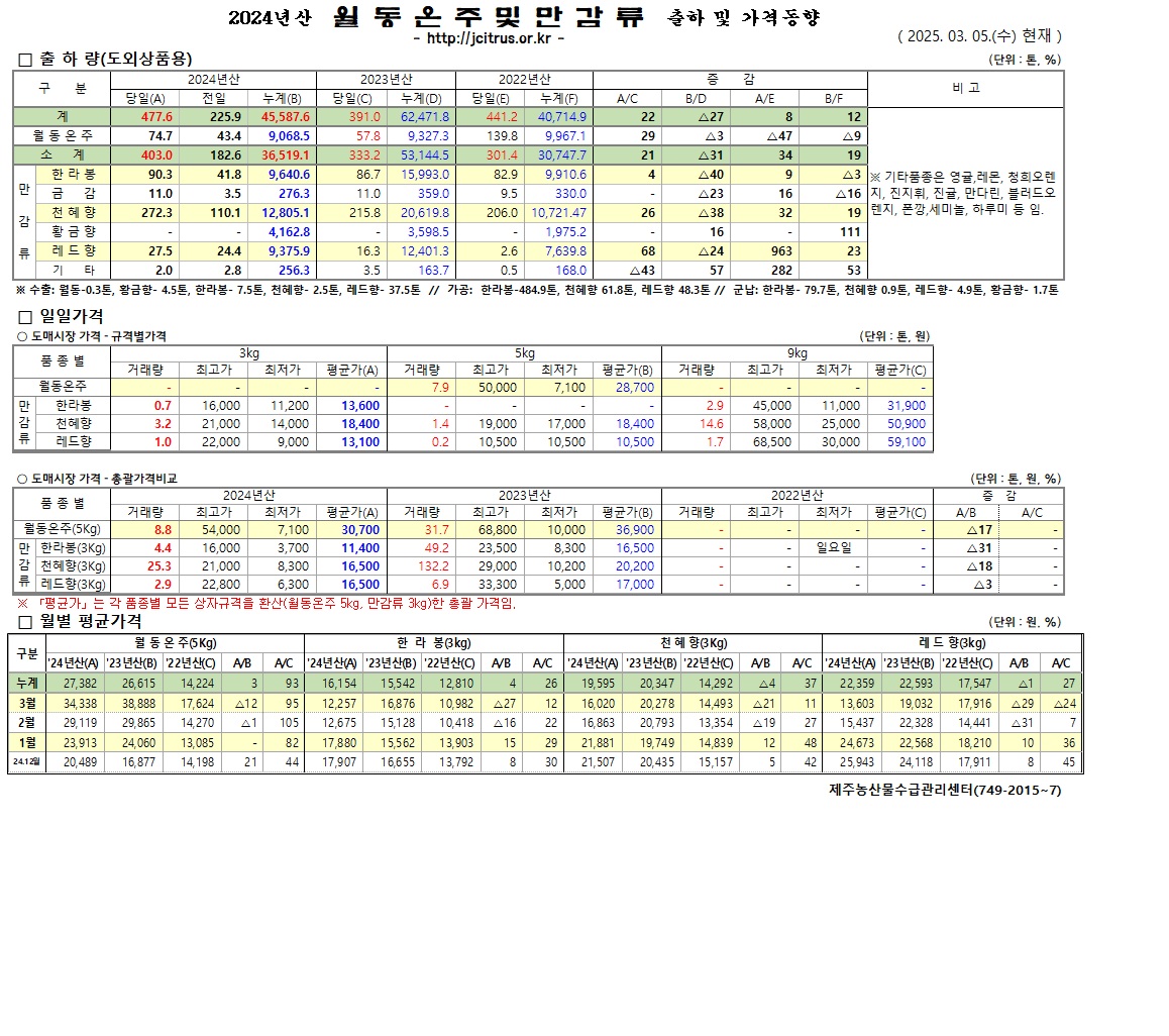 [월동&만감]2024년산 출하 및 가격동향(3/5)