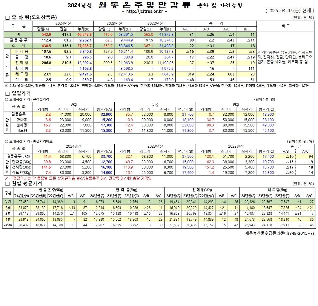 [월동&만감]2024년산 출하 및 가격동향(3/7)