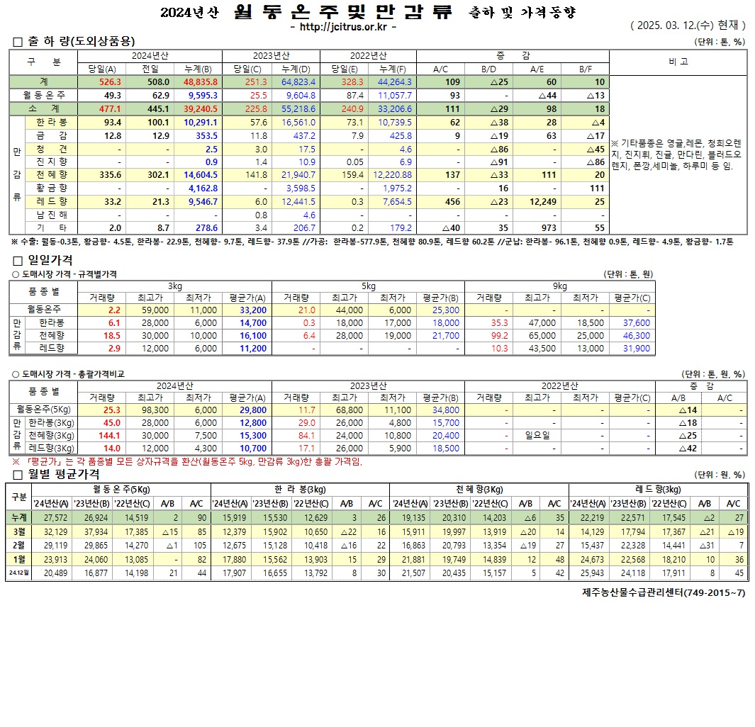 [월동&만감]2024년산 출하 및 가격동향(3/12)