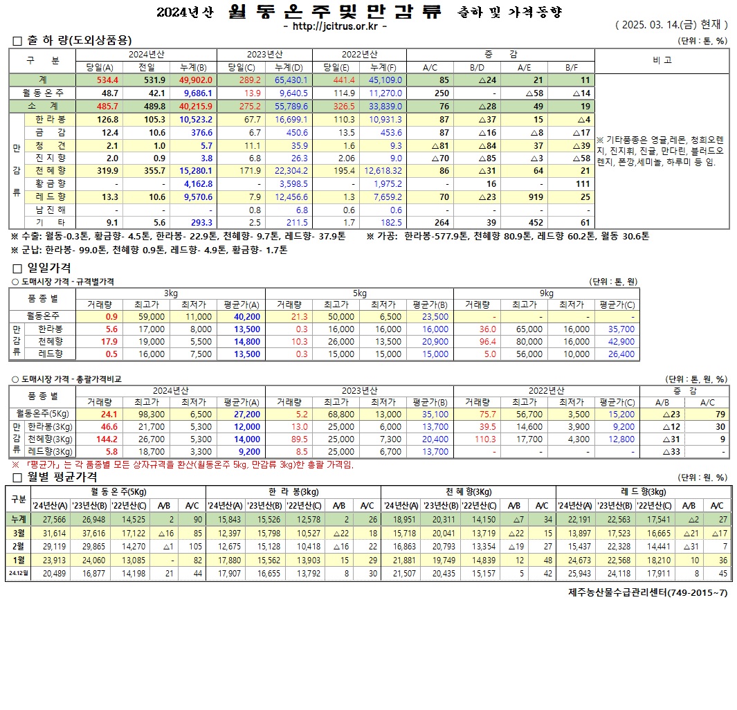[월동&만감]2024년산 출하 및 가격동향(3/14)