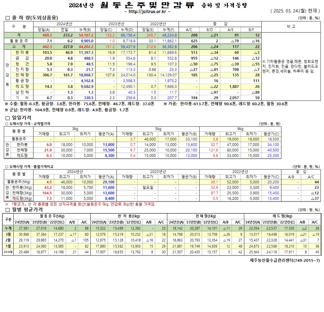 [월동&만감]2024년산 출하 및 가격동향(3/24)