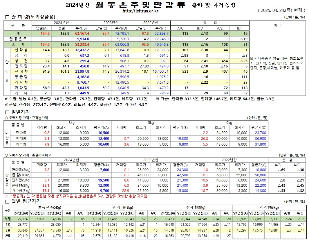[노지온주]2025년산 출하 및 가격동향(10/4)