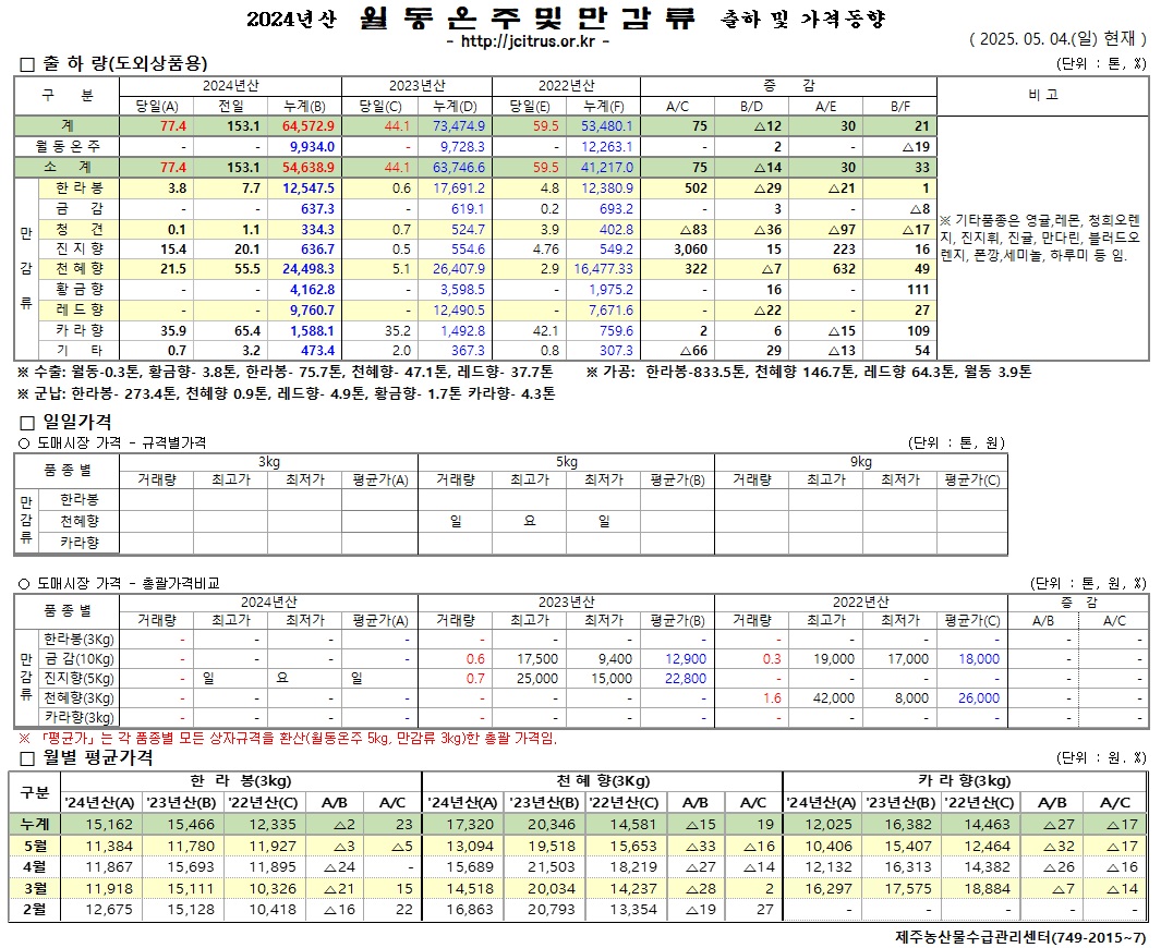 [월동&만감]2024년산 출하 및 가격동향(5/4)