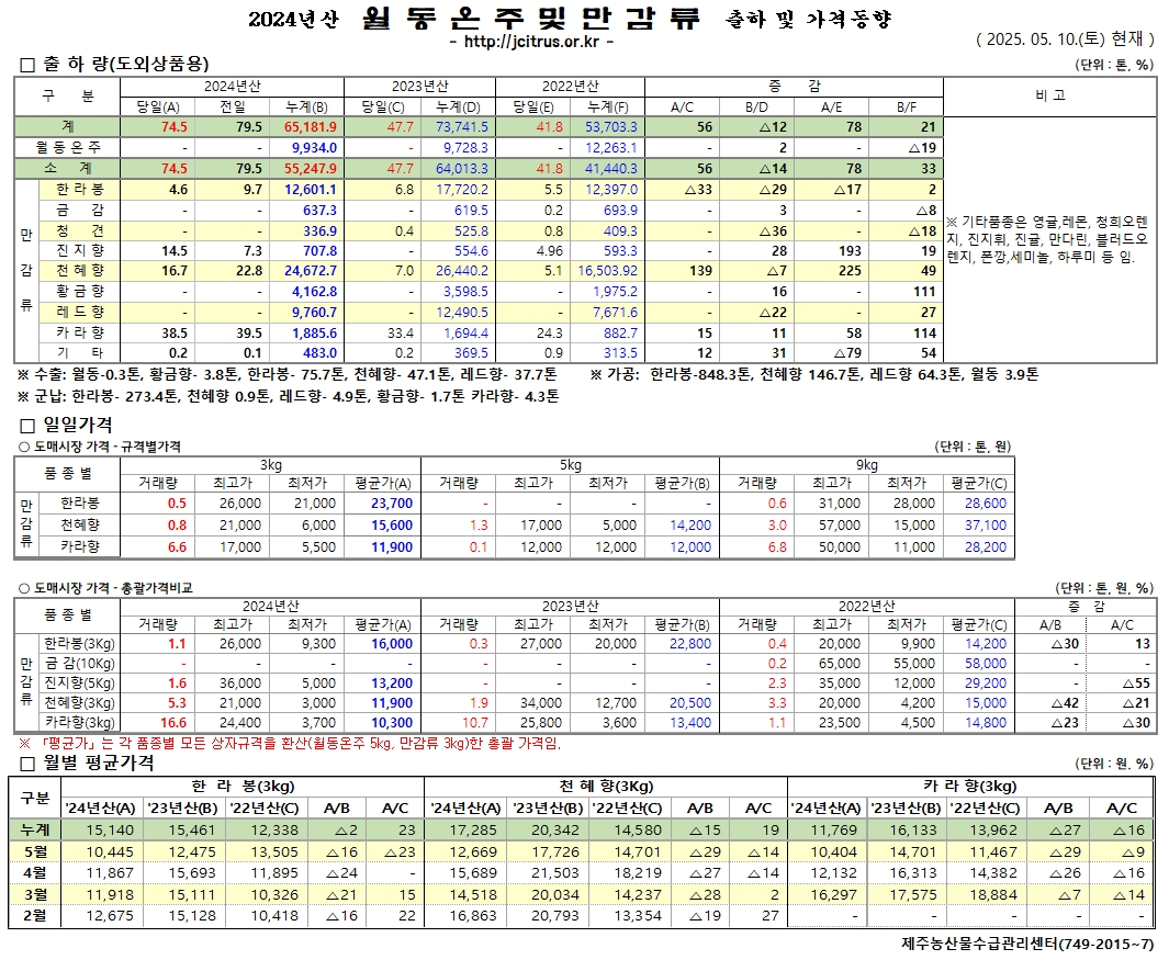 [월동&만감]2024년산 출하 및 가격동향(5/10)