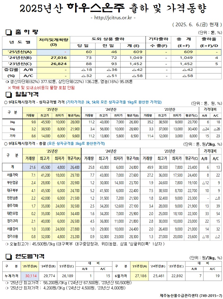 [하우스온주]2025년산 출하 및 가격동향(6/6)