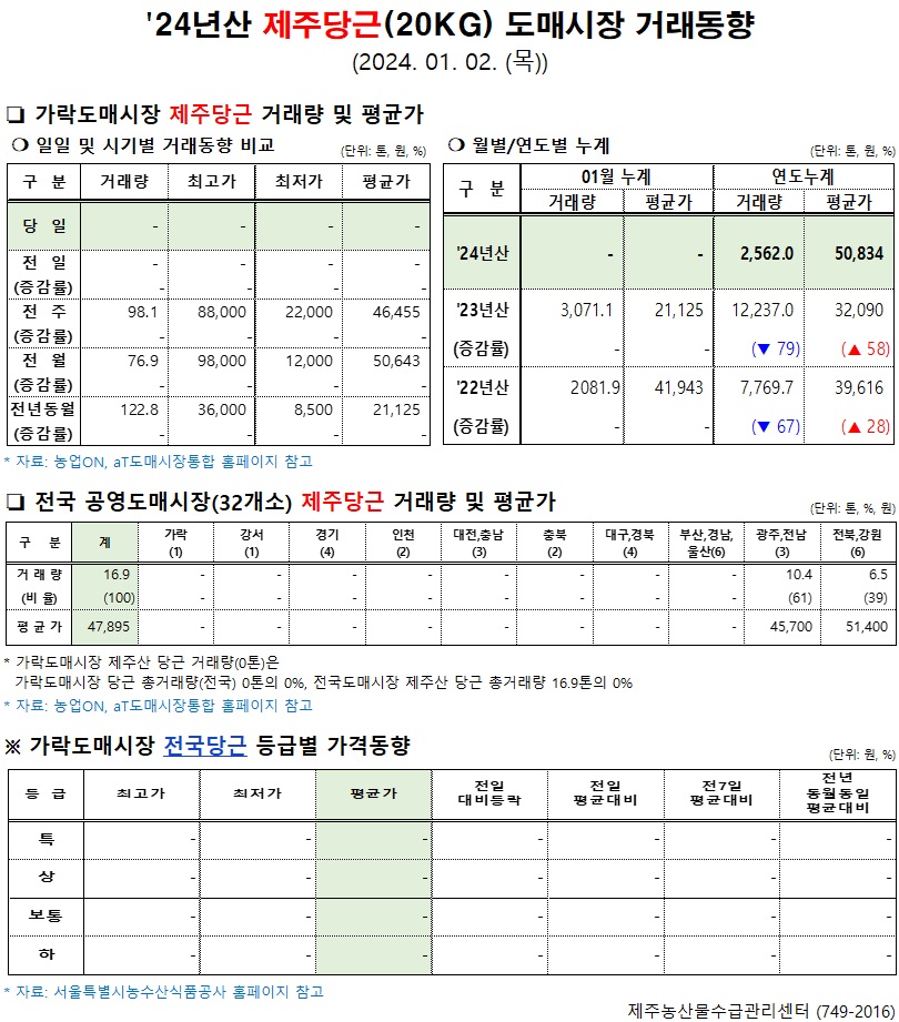 '24년산 제주당근(20kg) 도매시장 거래동향(1/2)