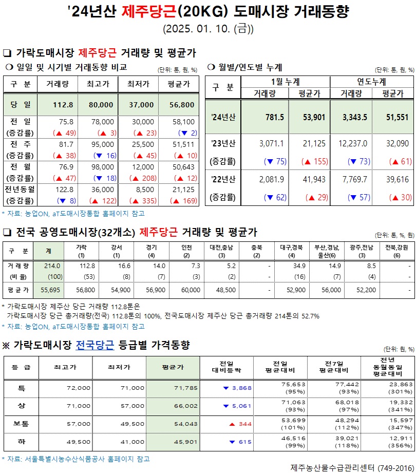 '24년산 제주당근(20kg) 도매시장 거래동향(1/10)