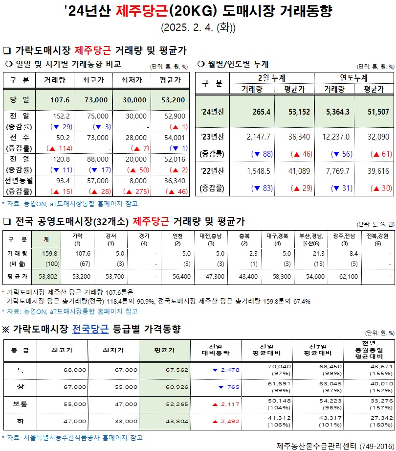 '24년산 제주당근(20kg) 도매시장 거래동향(2/4)