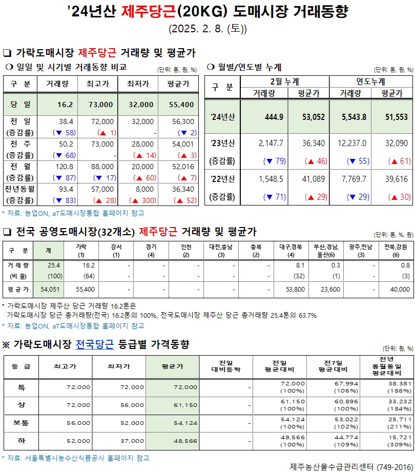 '24년산 제주당근(20kg) 도매시장 거래동향(2/8)