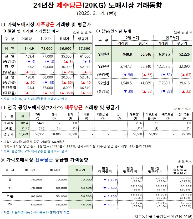 '24년산 제주당근(20kg) 도매시장 거래동향(2/14)