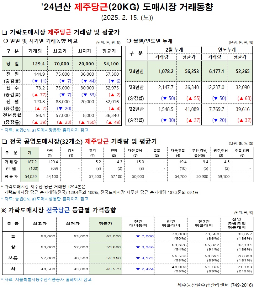 '24년산 제주당근(20kg) 도매시장 거래동향(2/15)