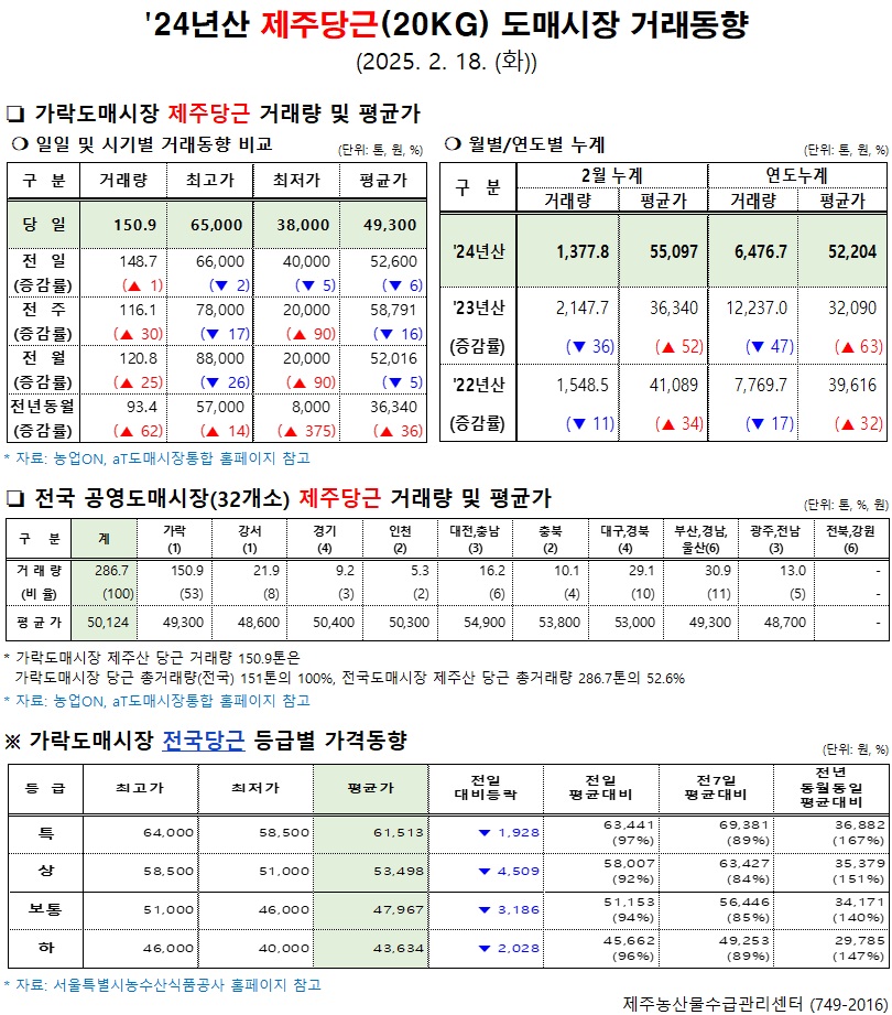 '24년산 제주당근(20kg) 도매시장 거래동향(2/18)