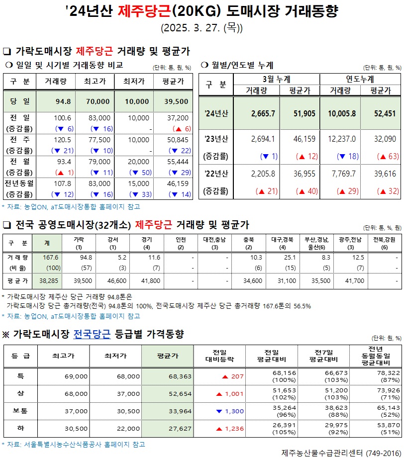 114 '24년산 제주당근(20kg) 도매시장 거래동향(3/29) 1 밭작물부 2025-03-29 251