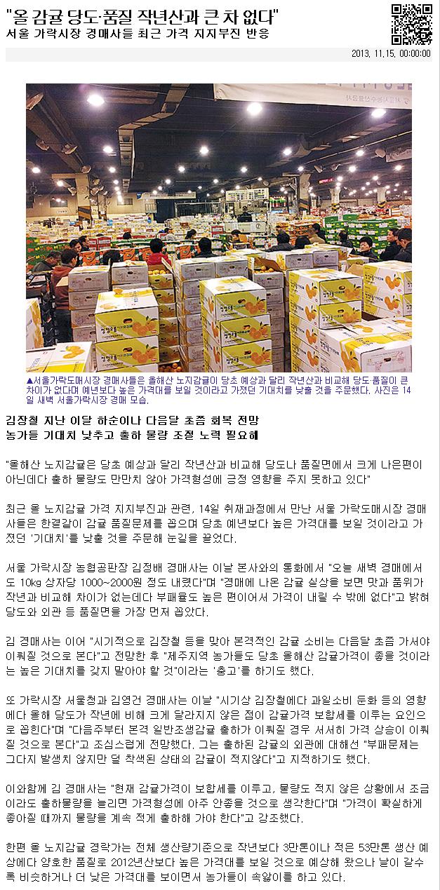 "올 감귤 당도·품질 작년산과 큰 차 없다"