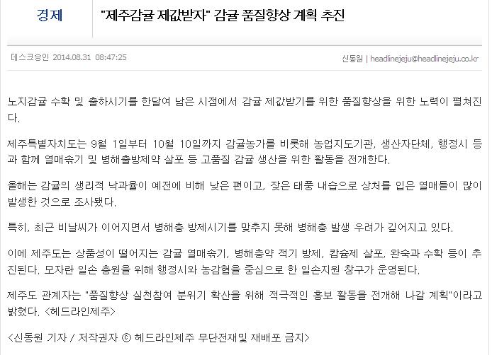 "제주감귤 제값받자" 감귤 품질 향상 계획 추진