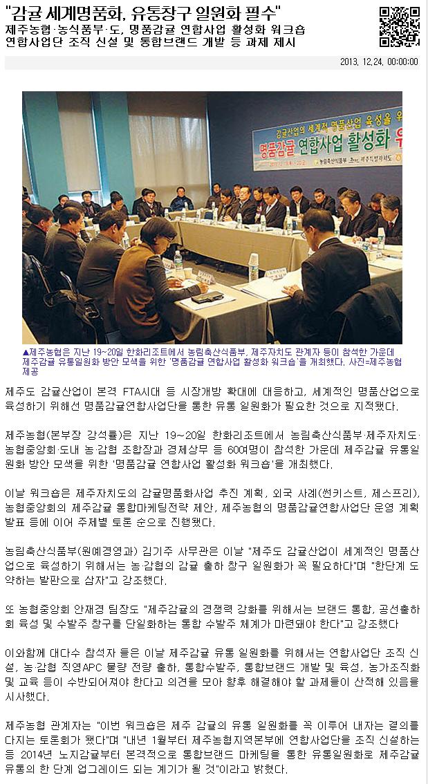 "감귤 세계명품화, 유통창구 일원화 필수"