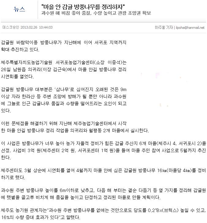 "마을 안 감귤 방풍나무를 정리하자"