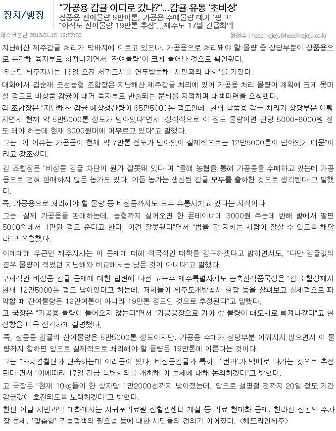 "가공용 감귤 어디로 갔나?"...감귤 유통 '초비상'