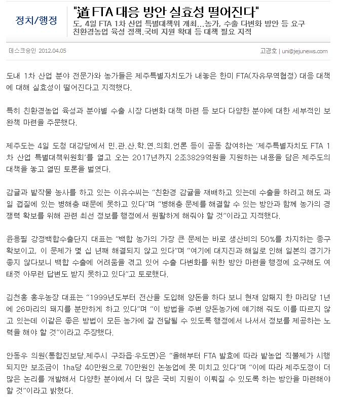 "道 FTA 대응 방안 실효성 떨어진다"