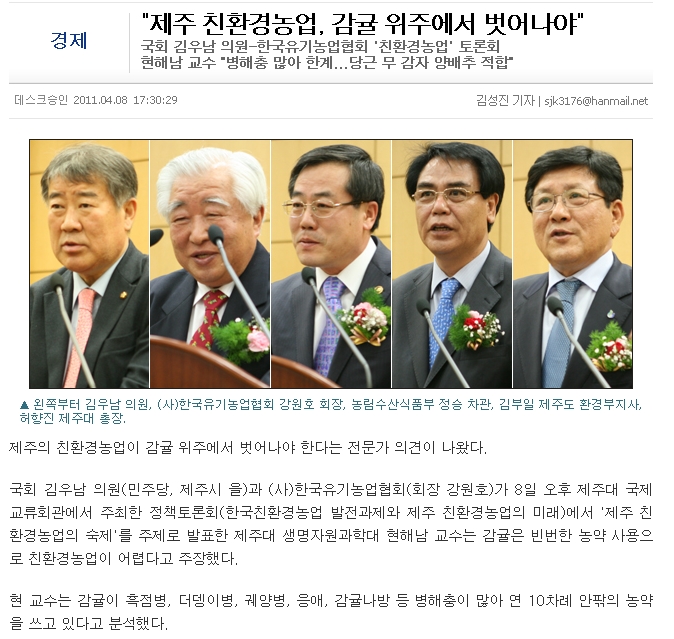 "제주 친환경농업, 감귤 위주에서 벗어나야"