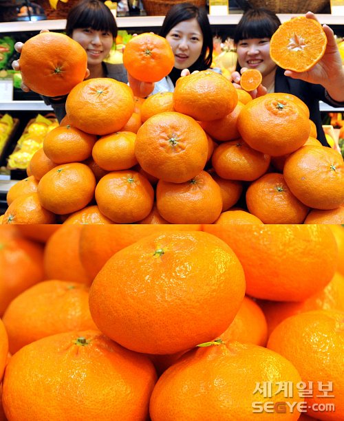 14일 오전 서울 신세계백화점 본점 청과매장에서 일본에서 한라봉과 감귤을 교배해 만들어진 이색감귤 '레드향'을 선보이고 있다. 레드향은 보통 감귤보다 크기가 크며 붉은 빛을 띠고 단맛이 높은 것이 특징이다.