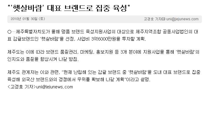 "'햇살바람' 대표 브랜드로 집중 육성"
