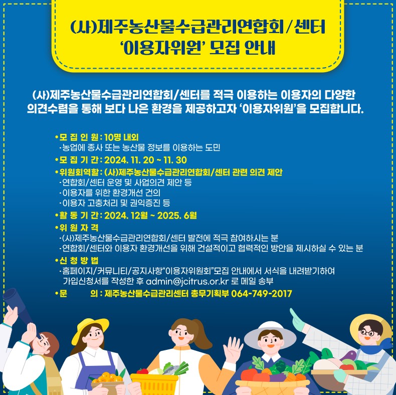 (사)제주농산물수급관리연합회/센터 이용자위원 모집 안내