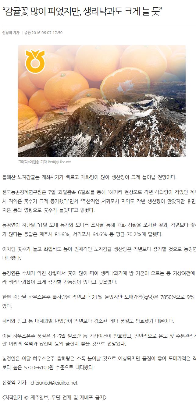 "감귤꽃 많이 피었지만, 생리낙과도 크게 될 듯."