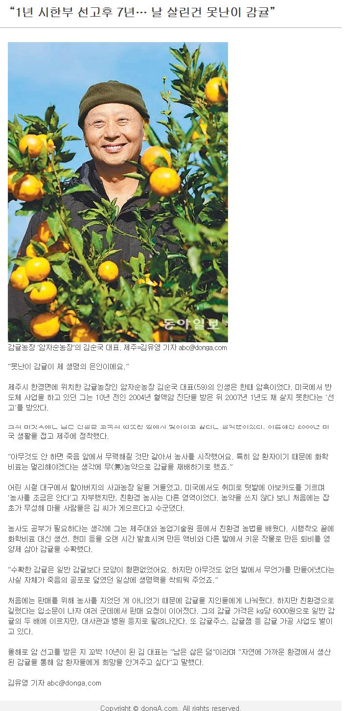 "1년 시한부 선고후 7년...날 살린건 못난이 감귤"